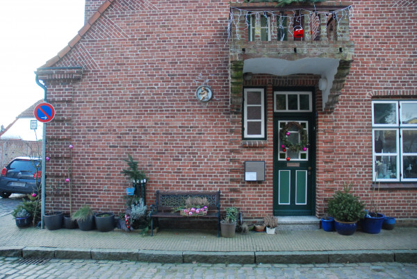 Frau D. wohnt und arbeitet in einem Mietshaus auf zwei Etagen. Sie ist erst vor etwa zwei Jahren nach Friedrichstadt gezogen und erzählt, sie habe sich gleich beim ersten Besuch in Friedrichstadt in das Städtchen verliebt. In der oberen Etage befinden sich ihr Schlafzimmer, ein Gästezimmer und ihr Arbeitszimmer. Das Gästezimmer würde vorwiegend von ihrer Tochter genutzt, die si…