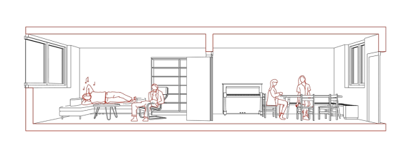 Während der Auseinandersetzung mit der FuWo sind uns zwei Themen besonders aufgefallen: Erstens interessierte uns die Aneignung der vorgefundenen Räume und die Intentionen zu deren Umnutzung. Zweitens zeigt sich in der Veränderung der räumlichen Form zugleich eine in der Bedeutung von Privatsphäre. Die Fallstudie verfolgt diese Themen als Referenz für das Umdenken eines Wohnverständnisses im größeren Kontext, wie es darin auch ein Modellprojekt für zukünftige alternative Wohnprojekte erkennt.